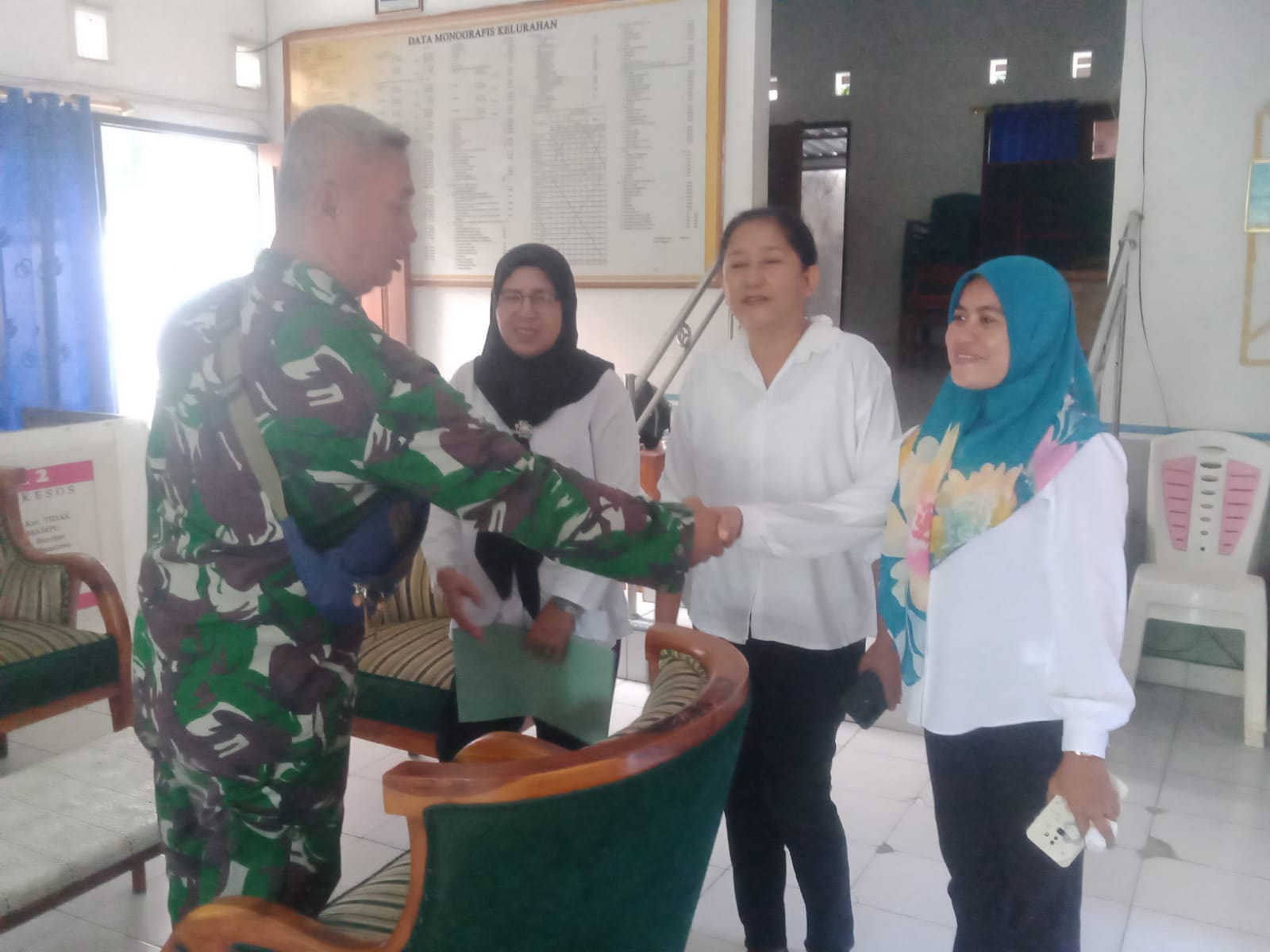 NTT-KOTA KUPANG - Untuk mempererat persaudaraan dan silaturahmi antara Babinsa dengan aparat pemerintah diwilayah binaannya, Babinsa Peltu Nuryani samnangi Staf Kelurahan Air Mata, Kecamatan Kota Lama, Kota Kupang, Rabu (10/4/2025).